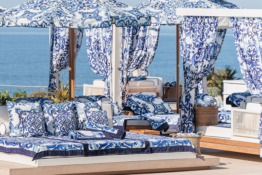 Saint-Tropez has long been synonymous with effortless chic, and Dolce&Gabbana takes this ethos even further at Casa Amor on Pampelonne Beach. The bohemian sophistication of this iconic site is transformed with the artistic vibrancy of the Carretto Siciliano motif—folkloric patterns that speak to the heart of Sicilian culture.