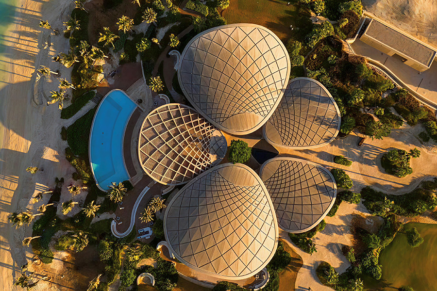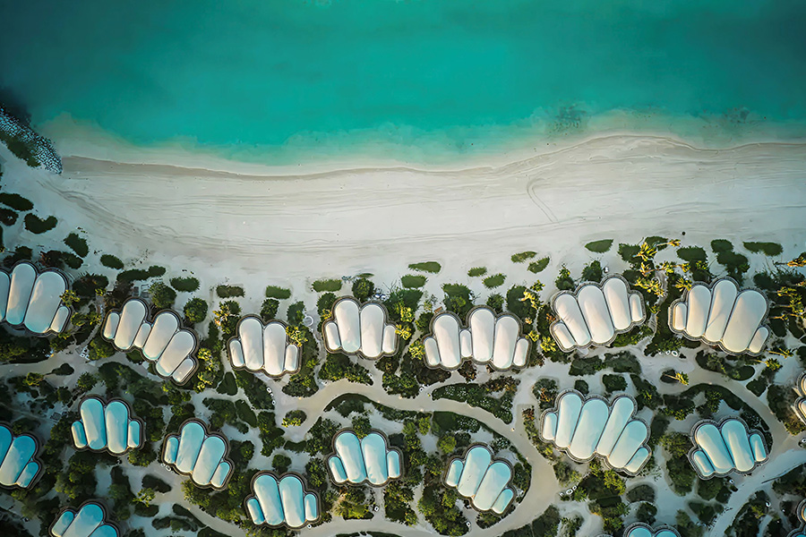 Naturally shaped like a dolphin, Shura Island was envisioned by the world-renowned architectural firm Foster + Partners. Its design philosophy, known as “Coral Bloom,” draws inspiration from the surrounding coral reefs. Every structure has been carefully integrated into the island’s ecosystem, ensuring minimal environmental impact while providing state-of-the-art luxury.
