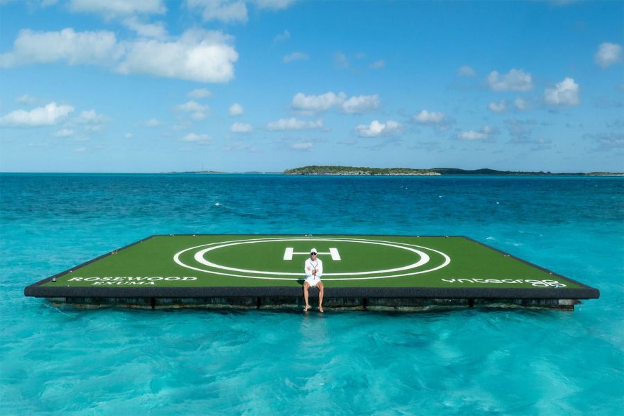 Luxury Hotels Redefine Arrival as Rosewood Exuma Introduces a Floating Helipad Experience