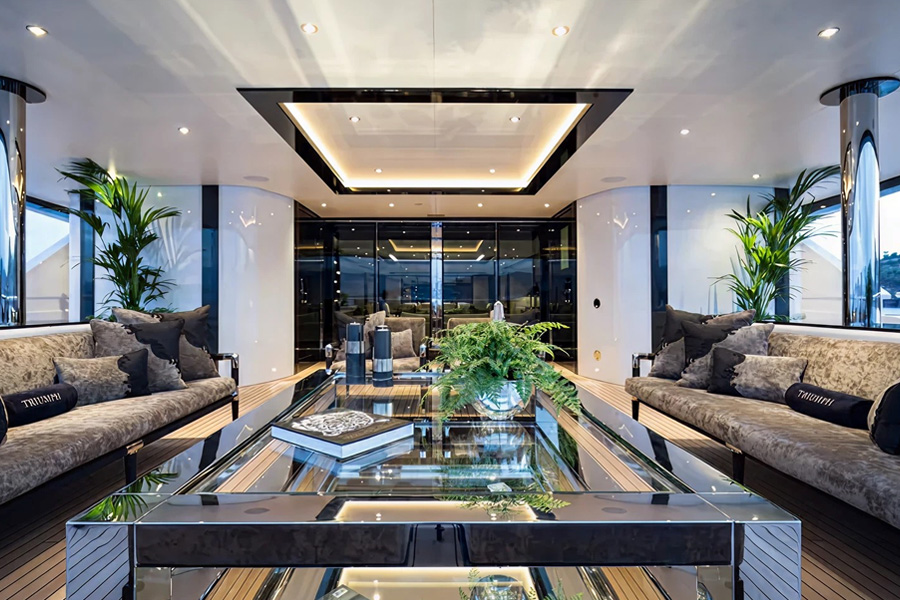 On board, Triumph accommodates 12 guests across six exquisitely designed staterooms, each crafted to deliver privacy, comfort, and understated sophistication.