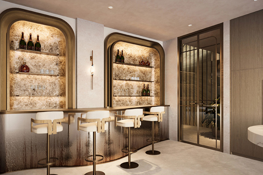Each buyer at The Residences will receive a complimentary design consultation from Harrods, with the option to access the full spectrum of the firm’s services, from concept and sourcing to final installation. Materials such as Taj Mahal marble, Murano glass, and veined travertine form the backdrop to a residence where every element is intentional and collectible.