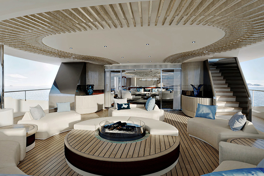 - Expansive Glass Architecture: Floor-to-ceiling glass walls are used throughout the yacht, flooding the interiors with natural light and offering a constant connection to the surrounding seascape.